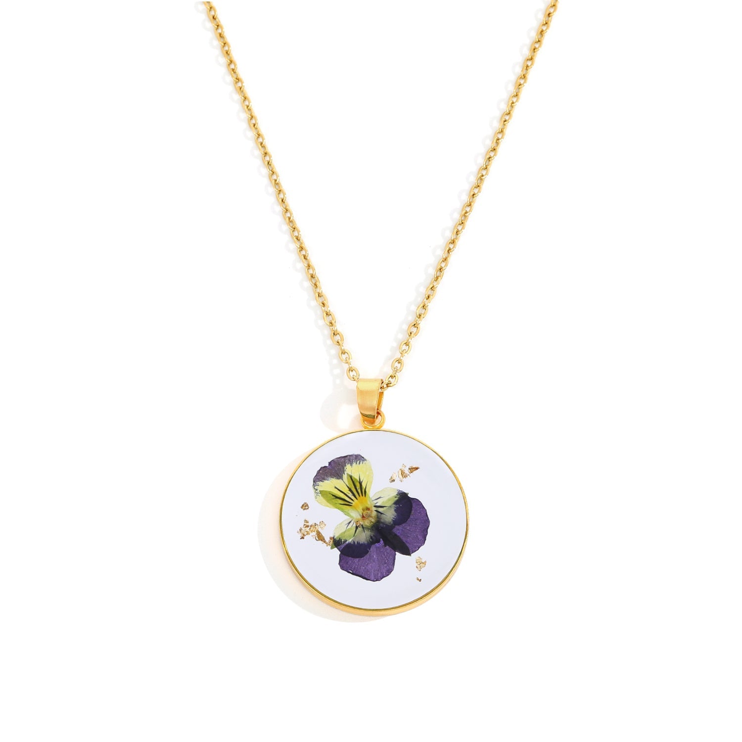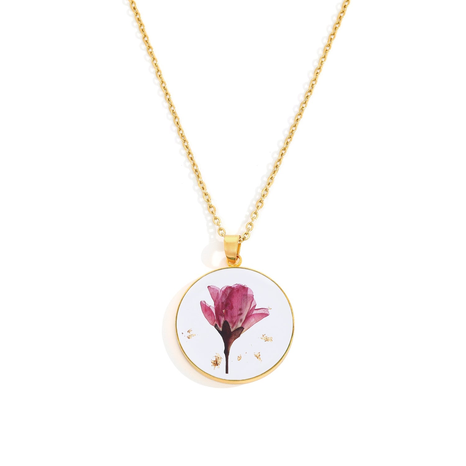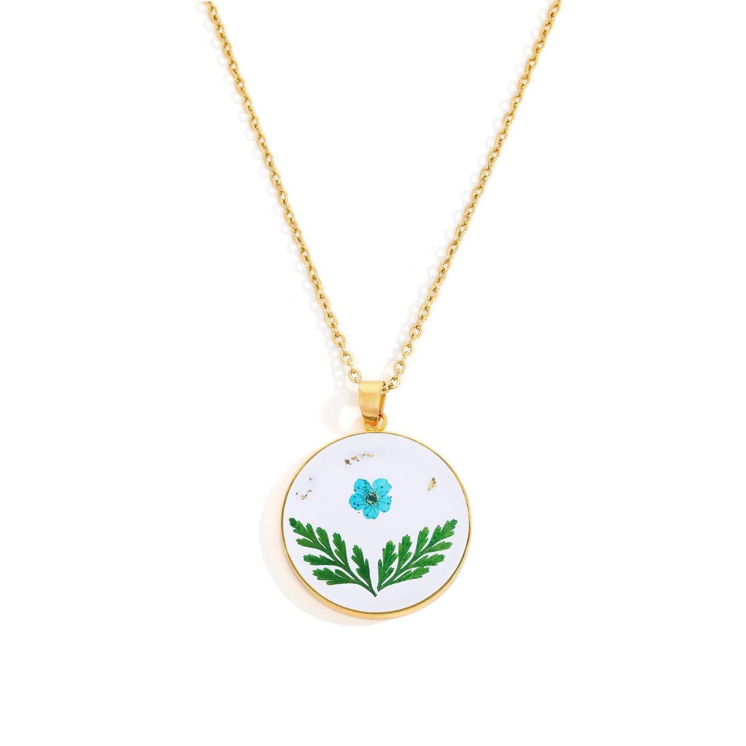 مصنوع يدويًا مع زهور حقيقية مضغوطة مغلفة بالرَاتينج، تم تصميم قلادتك للحفاظ على جمال الطبيعة مدى الحياة.